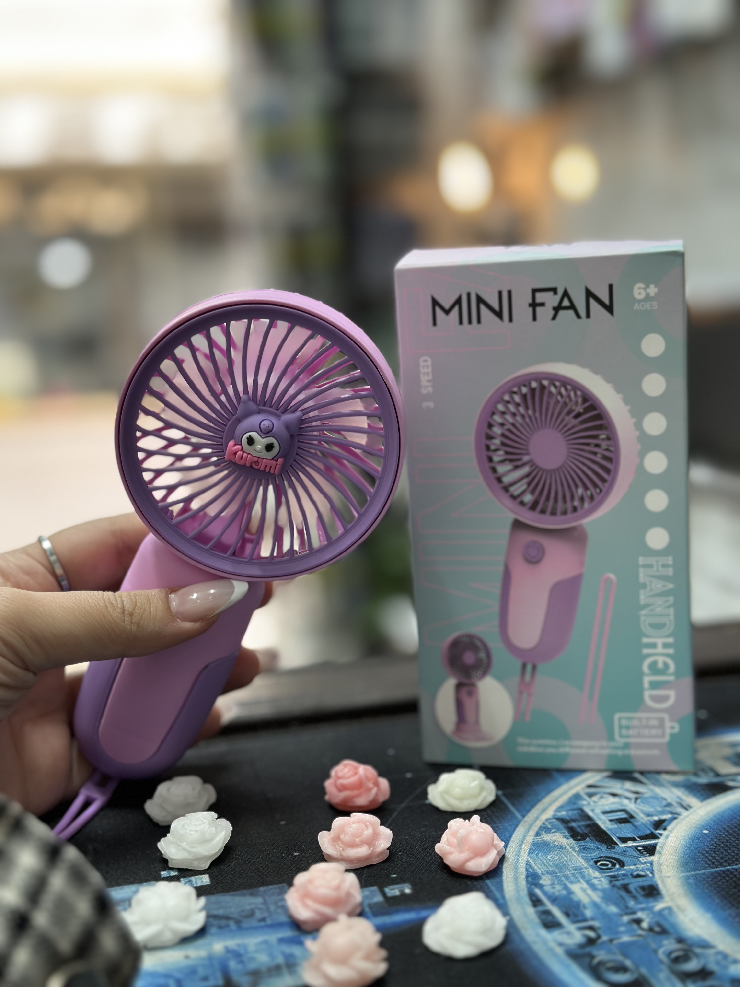 مینی فن فانتزی شارژی مناسب استفاده برای مژه کار،محل کار،اتاق خواب،کادو دادن و.... مینی پنکه دستی طرح کرومی